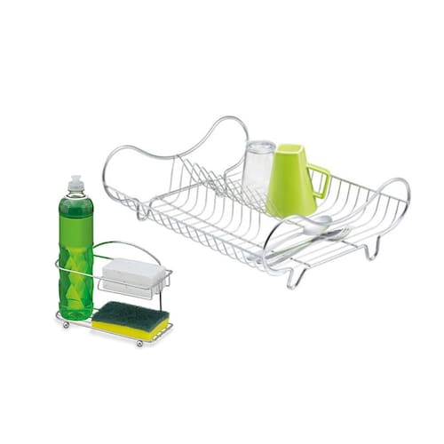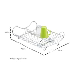 Contêm: 1 Escorredor de Pratos Dimensão: 46 x 35 x 15 cm 1 Organizador de Pia Dimensão: 20 x 8,5 x 13 cm Material: Aço cromado