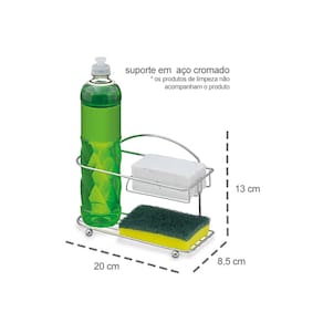 Escorredor de louça em aço cromado e porta detergente. O escorredor de pratos tem capacidade para 10 pratos e espaço para copos e talheres, é leve e prático. Porta detergente, bucha e sabão em aço cromado. Com esse organizador de pia, sua cozinha ficará ainda mais prática, deixando suas tarefas domésticas ainda mais fáceis.