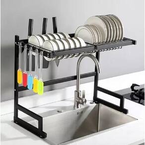 Prateleira de secagem em aço inoxidável, bandeja sobre pia, suporte para utensílios, organizador de cozinha, 65cm.