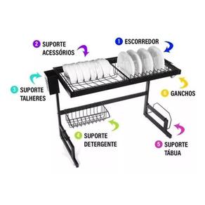 Escorredor de louça pratos organizador suspenso de pia 65cm cor preto