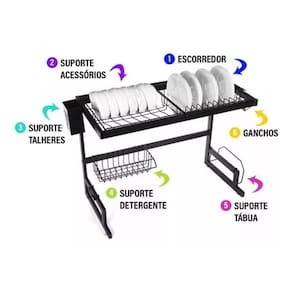 Escorredor de louça pratos organizador suspenso de pia 65cm Escorredor de louça pratos organizador suspenso de pia 65cm cor preto