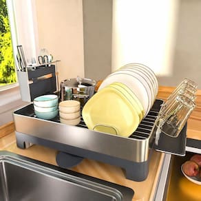 O escorredor de louça inox cinza RMaisCasa é perfeito para quem deseja unir praticidade e estilo na cozinha. Com bandeja coletora e sistema de escoamento, ele mantém sua bancada sempre limpa e organizada, tornando o ambiente mais funcional e agradável.
