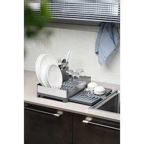 Para aqueles dias de rotina corrida que você não tem muito tempo para as tarefas de casa, conte com o escorredor de louça Tramontina Plurale em aço inox e polipropileno com porta talheres grafite. Ele conta com um prático porta talheres em polipropileno com perfeito encaixe em sua superfície. Compacto mais sem deixar de acomodar as louças que você precisa, ele comporta 9 pratos, talheres e copos, sendo o porta copos expansível. Possui alças que proporcionam maior segurança no manuseio e inclinação que direciona a água para a bandeja coletora, fazendo com que ela caia direto para a pia. Um item prático e indispensável para quem está sempre na correria!