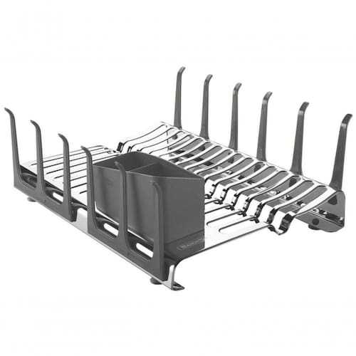 - Cor: Grafite;- Pés de silicone;- Altura: 16,5 cm;- Corpo em aço inoxidável;- Acabamento em alto brilho;- É possível acomodar 16 pratos e 12 copos, além de talheres e outros utensílios;- Porta-talheres e porta-copos de polipropileno, com encaixe no corpo do escorredor.- Foto meramente ilustrativa. Ean: 7891116100806