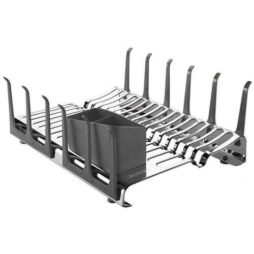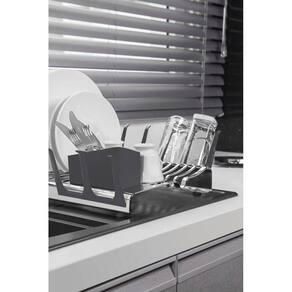 Escorredor de Louça Tramontina em Aço Inox com Secador de Copos e Porta Talheres Grafite O escorredor de louças Plurale da Tramontina é mais do que um escorredor de louças. É a ousadia da cor combinada com a modernidade do aço inox. É a inovação do design a serviço de praticidade e da eficiência no dia a dia.Serve para decorar. Serve para colorir e dar personalidade à cozinha. Serve para renovar o ambiente da casa.Em aço inoxidável, altamente durável, mantém suas características originais, preservando a beleza, a higiene e a durabilidade do material. Com design moderno e descontraído, para deixar seu ambiente mais bonito e funcional, com quatro opções de cores. Acabamento em alto brilho. Pés de silicone, não escorrega nem arranha as superfícies. Porta-talheres e porta-copos de polipropileno, com encaixe no corpo do escorredor. Capacidade: é possível acomodar 16 pratos e 12 copos, além de talheres e outros utensílios. Recomendações de uso Para que seu produto de aço inox Tramontina fique sempre bonito e com brilho, recomendamos que seja lavado somente com detergente e esponja. Depois da lavagem, sempre que possível, enxágue o produto com água quente e seque-o imediatamente, para que se mantenha com o brilho original, pois o cloro e as substâncias contidas na água podem deixar manchas. Instruções de montagem: Encaixe o porta-copos nos rasgos do escorredor. Desloque o porta-copos para baixo para obter perfeita fixação. Obs: em caso dedesmontagem desloque para cima e retire as peças removendo-as da base.