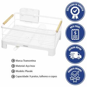 ESCORREDOR DE LOUÇA TRAMONTINA PLURALE COM SECADOR E PORTA TALHERES BRANCO 61536200