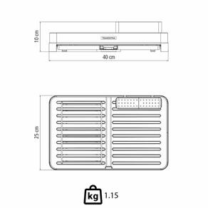 - Dispõe de uma inclinação que direciona a água que escorre da louça na bandeja coletora, fazendo com que ela caia de modo direto na pia, deixando seu ambiente sempre seco e limpo.