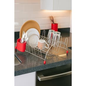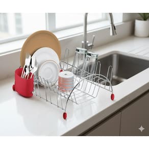 Produzido em arame cromado com ponteiras em PVC e caixinha em polietileno, o escorredor Utimil une resistência e design moderno. Seu acabamento cromado com detalhes vermelhos adiciona charme à sua cozinha, tornando as tarefas domésticas mais leves e agradáveis.