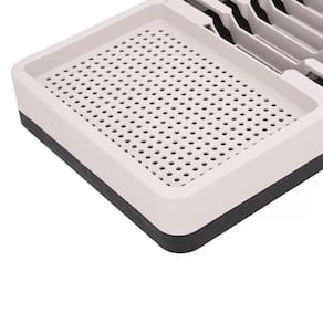 Especificações: Material: PP (prolipropileno) Cor: Warm Gray/ cinza claro e escuro Capacidade: 6 pratos e 6 copos podendo ser extensível Dimensões aproximadas do produto: 10 x 26 x 42 cm (A x L x C) Dimensões da embalagem: 11 x 26,2 x 42,4 (A x L x C) Peso: 1,150 kg