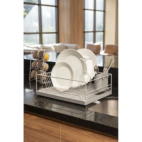 O Escorredor de Louças Dry com bandeja vai deixar sua cozinha muito mais organizada e cheia de estilo. Conta com uma bandeja coletora que possui uma calha direcionadora para escorrer a água diretamente na cuba e evitar que sua pia fique molhada.