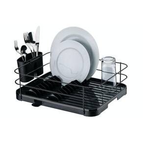 A loja B2U traz para você mais um produto cheio de requinte e qualidade:Este Escorredor de Louças proporciona beleza para a cozinha com seu design diferenciado.A capacidade do Escorredor de Louças é para 12 pratos, além de ter local específico para o armazenamento dos talheres. Mantenha a sua cozinha prática e organizada.Acompanha bandeja escorredora de água.Informações do produto:Matéria prima base: Aço Carbono e Plástico.Cor/acabamento: Preto / Ônix Capacidade: 12 PratosMedidas: 40,5 x 35,5 x 13,5 cmPeso: 1 kgComposição:01 Base do escorredor em plástico01 Acabamento em Piatina01 Suporte AramadoCuidado e Conservação- Para limpeza periódica recomenda-Se o uso de um pano macio, água e sabão neutro.- Nunca utilize materiais abrasivos, lã de aço, esponjas ásperas, solventes ou produtos químicos corrosivos (cloro, água sanitária).