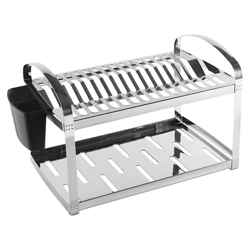 Características Principais e Capacidade: Comporta até 16 pratos de diversos tamanhos e formatos. Estrutura: Possui dois andares; a parte superior é destinada aos pratos e a base inferior é plana para acomodar copos e outros utensílios. Porta-Talheres: Inclui um compartimento removível em plástico polipropileno preto, que facilita a limpeza e organização. Escoamento: O corpo apresenta recortes técnicos que evitam o acúmulo de água e aceleram a secagem higiênica da louça.