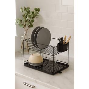 Escorredor Duplo Dry C/ Bandeja 30,5 X 40,5 X 32 CM - Cinza ou Preto - Forma Utilidades