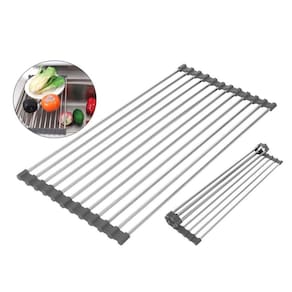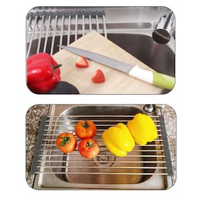 Especificações: Medidas: 48x29cm Material: aço inoxidável 201 Diâmetro do tubo redondo: 6mm Material da tira de borracha: borracha macia de PVC Tipo: escorredor Características: Fácil de limpar Estilo: Contemporâneo