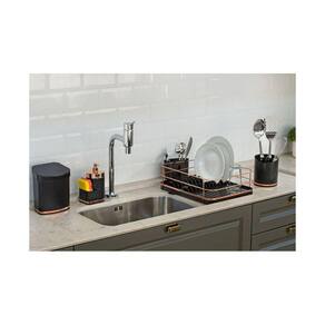 Escorredor De Louças Future 12 Pratos Talheres Plástico Aço Cor: Preto e Dourado A loja Brasil UD traz para você mais um produto cheio de requinte e qualidade: Este Escorredor de Louças proporciona beleza para a cozinha com seu design diferenciado. A capacidade do Escorredor de Louças é para 12 pratos, além de ter local específico para o armazenamento dos talheres. Mantenha a sua cozinha prática e organizada. Acompanha bandeja escorredora de água. Informações do produto: Matéria prima base: Aço Carbono e Plástico. Cor/acabamento: Preto/BrancoDetalhes: Rosé Gold, Dourado, Prateado, Ônix Capacidade: 12 Pratos Medidas: 40,5 x 35,5 x 13,5 cm Peso: 1 kg Composição: 01 Base em plástico 01 Acabamento em Piatina 01 Suporte Aramado Cuidado e Conservação: - Para limpeza periódica recomenda-Se o uso de um pano macio, água e sabão neutro. - Nunca utilize materiais abrasivos, lã de aço, esponjas ásperas, solventes ou produtos químicos corrosivos cloro, água sanitária . Imagens ilustrativas.