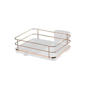 Escorredor De Louças Future 12 Pratos Talheres Plástico Aço Cor: Branco e Rosé Gold A loja Brasil UD traz para você mais um produto cheio de requinte e qualidade: Este Escorredor de Louças proporciona beleza para a cozinha com seu design diferenciado. A capacidade do Escorredor de Louças é para 12 pratos, além de ter local específico para o armazenamento dos talheres. Mantenha a sua cozinha prática e organizada. Acompanha bandeja escorredora de água. Informações do produto: Matéria prima base: Aço Carbono e Plástico. Cor/acabamento: Preto/BrancoDetalhes: Rosé Gold, Dourado, Prateado, Ônix Capacidade: 12 Pratos Medidas: 40,5 x 35,5 x 13,5 cm Peso: 1 kg Composição: 01 Base em plástico 01 Acabamento em Piatina 01 Suporte Aramado Cuidado e Conservação: - Para limpeza periódica recomenda-Se o uso de um pano macio, água e sabão neutro. - Nunca utilize materiais abrasivos, lã de aço, esponjas ásperas, solventes ou produtos químicos corrosivos cloro, água sanitária . Imagens ilustrativas.