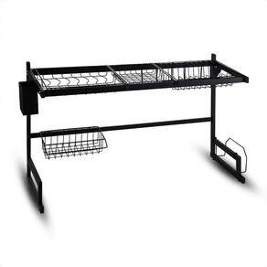 Dimensões: 85 cm de comprimento, 51,5 cm de altura e 33,5 cm de profundidade Composição: Aço inoxidável Peso: 1,890 kg Cor: Preto Fosco Contém: 01 Escorredor de Louças Grande Suspenso para Pia - Preto Fosco