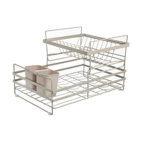 Mantenha a sua pia organizada enquanto as suas louças secam, com o Escorredor de Louças Neutre One! Fabricado em ferro, é durável e oferece praticidade para o seu dia a dia. Possui 2 compartimentos, para maior armazenamento de louças. O porta talheres é removível, facilitando a higienização. O escorredor tem sapatas de plástico em sua base, para proteção da superfície da pia.