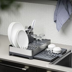 Para aqueles dias de rotina corrida que você não tem muito tempo para as tarefas de casa, conte com o escorredor de louça Tramontina Plurale em aço inox e polipropileno com porta talheres grafite.