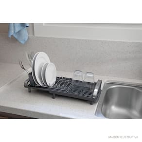 • Ideal para cozinhas pequenas onde há pouco espaço na bancada. • Pés de silicone, não escorrega nem arranha as superfícies. • Porta-talheres de polipropileno, com encaixe no corpo do escorredor. • Capacidade: é possível acomodar 9 pratos, copos e talheres. • Porta copos expansível. • Alças para maior segurança no manuseio. • Design compacto. • Dispõe de uma inclinação que direciona a água que escorre da louça na bandeja coletora, fazendo com que ela caia de modo direto na pia, deixando seu ambiente sempre seco e limpo.