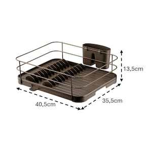 O Escorredor de Louças possui bico fixo para vazão da água. Você direciona essa saída de água para dentro da cuba e a pia fica sempre seca. Tem capacidade para 12 pratos e um porta talheres removível, que pode ser posicionado onde for mais conveniente. É fabricado em plástico e aço carbono, com detalhe em aço.