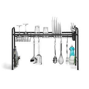O Escorredor de Louças Suspenso 82cm Preto - Arthi é completo, elegante, resistente e perfeito para aproveitar melhor o espaço. Feito de aço cromado, possui suporte para detergente acoplado e permite pendurar utensílios para secar, deixando a cozinha com um visual moderno. Acompanha cinco ganchos e kit para montagem.