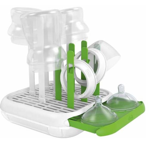 o escorredor de biberões é a solução ideal para guardar e escorrer biberões e outros acessórios do bebé após a lavagem. possui uma gaveta interna que adapta-se perfeitamente a todos os espaços da cozinha, permitindo duplicar ou reduzir a superfície de apoio para os produtos. a hastes incluídas apresentam 2 combinações de cores, formas e alturas diferentes para ajudar na disposição dos produtos: