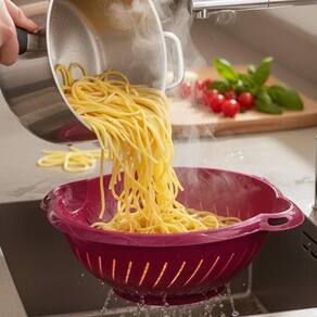 - Função: Escorrer massas, lavar frutas, legumes e verduras