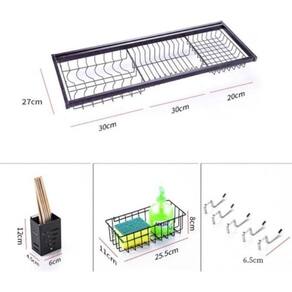 Escorredor de Pia Preto com Prateleira Organizador de Louça 85cm Casambiente