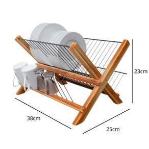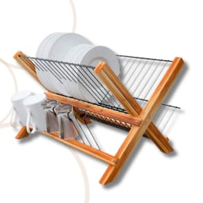 Escorredor de louças dobrável Bambu. Produto compacto, de grande beleza e alta qualidade. O moderno, dobrável, é um produto que nunca sai de moda, é feito em madeira nobre, madeira teca, que é uma madeira utilizada em embarcações navais, pode tranquilamente ser no ambiente da cozinha, devido a sua alta durabilidade. Para ter mais segurança, possui em baixo dos pés uma peça em silicone, o que evita que arranhe ou marque bancadas. O produto pode ser facilmente dobrável e guardado em locais pequenos. Tem capacidade para até 16 pratos e 5 copos, além disso, possui espaço reservado para talheres. A madeira de Teca utilizada no escorredor provém de madeira de reflorestamento, são aproveitadas pequenas partes da fabricação de outros itens, que em outro momento seriam desperdiçadas, e agora, ganharam lugar de destaque nesta peça. Fabricada em aço carbono com acabamento de pintura epóxi preto, madeira Teca de reflorestamento com acabamento em óleo mineral. A madeira teca possui uma linda cor no tom marrom acobreado Dimensões: 39x37x23,5cm Peso: 1.15kg Marca: Não Informado Ean: 7899850352871