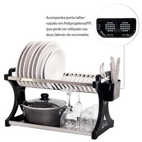 Especificações Técnicas: - Material: aço inox e pp polipropileno - Capacidade: acomoda até 20 pratos no segundo andar - Altura: 31cm - Largura: 26cm - Comprimento: 51cm - Peso aproximado: 1,600kg