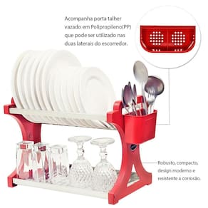 Escorredor De Pratos Alto Vermelho Inox 16 Pratos Cor: Vermelho Escorredor De Pratos Alto Vermelho Inox 16 Pratos