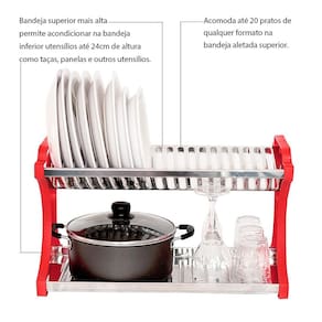 Escorredor De Pratos Alto Vermelho Inox 20 Pratos