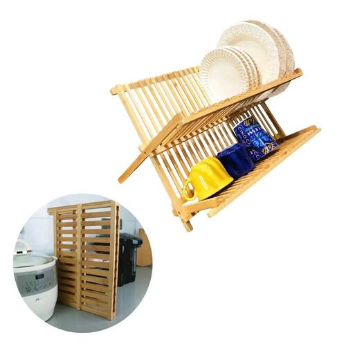 Escorredor De Pratos E Louças Em Bambu 100% Natural Dobrável