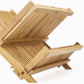 - Helen’s Bamboo Dish Drying Rack for draining and drying plates, bowls, cups, glasses, and flatware