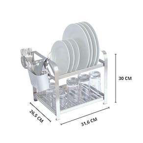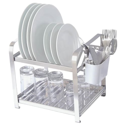 Feito em Inox e Plástico PP, esse escorredor é durável e resistente. Sua cor branca proporciona um toque de elegância para sua cozinha. Com medidas de aproximadamente 30 cm de altura, 26,5 cm de largura e 31,5 cm de comprimento, é compacto e fácil de ser armazenado. Acompanha 01 porta talheres.