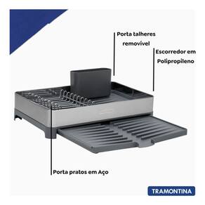 Ficha Técnica: Marca: Tramontina Linha: Plurale Modelo: Escorredor de Louça Tramontina Plurale Material: Aço Inox e Polipropileno Cor: Grafite Capacidade: Acomoda 9 pratos, copos e talheres