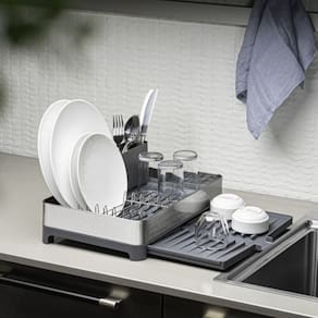 - Material Principal em Aço Inox de alta durabilidade - Possui Porta Talheres em Polipropileno com opção de encaixe - Inclui Bandeja Coletora para escoamento da água, mantendo a bancada seca - Pés em silicone que garantem estabilidade e protegem a superfície contra riscos - Modelo compacto, ideal para otimizar o espaço em cozinhas menores - Bandeja para Copos e Xícaras