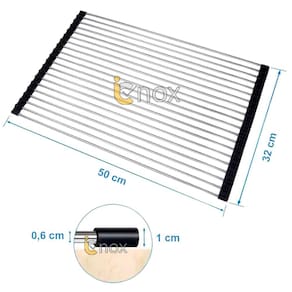 Escorredor Esteira: - Em Aço e silicone de alta qualidade e acabamento. - Dimensões: Comprimento de 50 cm X Largura de 32 cm X 1 cm de altura.