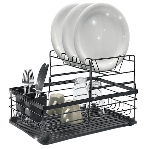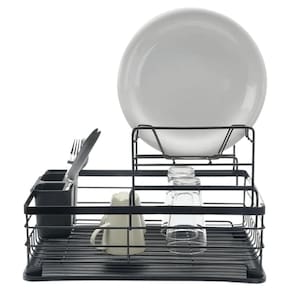 Escorredor de Louça Aramado Preto com Bandeja Coletora e Porta Talheres Removível - Compacto e Sofisticado Transforme sua rotina na cozinha com praticidade e elegância Ideal para quem busca organização, funcionalidade e um toque moderno, esse escorredor de louça é perfeito para cozinhas pequenas, apartamentos e espaços otimizados. Fabricado em aço resistente com pintura epóxi preta fosca, ele não enferruja, garante durabilidade e ainda deixa sua bancada com um visual sofisticado. Destaques do Produto:
