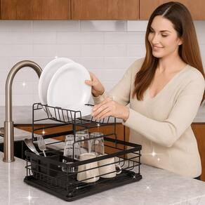 Escorredor de Louça Aramado Preto com Bandeja Coletora e Porta Talheres Removível - Compacto e Sofisticado Transforme sua rotina na cozinha com praticidade e elegância Ideal para quem busca organização, funcionalidade e um toque moderno, esse escorredor de louça é perfeito para cozinhas pequenas, apartamentos e espaços otimizados. Fabricado em aço resistente com pintura epóxi preta fosca, ele não enferruja, garante durabilidade e ainda deixa sua bancada com um visual sofisticado. Destaques do Produto: