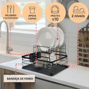 Capacidade para até 10 pratos, copos, tigelas, talheres e utensílios