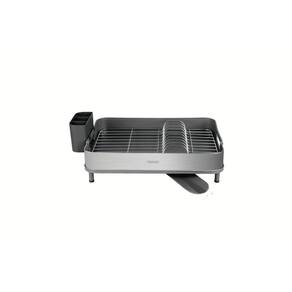 Escorredor Louça Tramontina Inox com Porta Talher Removível Cor: Grafite Detalhes do produto Tenha em sua cozinha o escorredor de louça Tramontina em aço e polipropileno, o aliado perfeito para tornar sua vida mais prática e organizada. Com uma capacidade excelente, ele é permite acomodar até 10 pratos pequenos, copos, talheres e panelas utilizados no dia a dia. Ele possui porta-talheres em polipropileno, que é removível e possui encaixe no corpo do escorredor, garantindo maior versatilidade e facilidade na hora de guardar e organizar seus utensílios. Seus pés de silicone evitam escorregões ou arranhões nas superfícies da sua cozinha e suas alças anatômicas garantem um manuseio confortável, facilitando o transporte do escorredor de louça para onde você precisar. O escorredor ainda conta com um bico móvel 360º para escoamento e inclinação inteligente, que direciona a água diretamente para a bandeja coletora, fazendo com que sua pia fique sempre seca e limpa, evitando acúmulo de água e proporcionando um ambiente mais higiênico. Uma opção com design compacto, que se encaixa perfeitamente em qualquer espaço, otimizando sua bancada e mantém tudo organizado