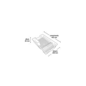 Capacidade de pratos: 12 Lugar de colocação: de bancada Materiais do escorredor de louça: plástico Quantidade de andares: 1 Comprimento x largura x altura: 44.4 cm x 29 cm x 8 cm