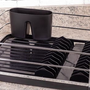 Com muita elegância e sofisticação, este escorredor possui bico fixo para vazão da água. Você direciona essa saída de água para dentro da cuba e a pia fica sempre seca. Tem capacidade para 12 pratos e um porta talheres removível, que pode ser posicionado onde for mais conveniente. É fabricado em plástico e aço carbono, com detalhe em aço piatina cromado (aço em formato achatado), o que traz maior resistência contra ferrugem.Características:- Dimensões: 40,5cm (Profundidade) x 35,5cm (Largura) x 13,5cm (Altura)- Peso: 1,020kg- Conteúdo da embalagem: 1 Escorredor de Louças e 1 Suporte para Talheres- Possui Tecnologia Rust Free: Resistente ao ferrugem, aos raios UV e à umidadeEspecificações:Matéria-prima: Plástico + Aço CarbonoCapacidade: 12 pratosLinha: OriginaleDicas de uso:- Para limpeza periódica recomenda-se o uso de um pano macio, água e sabão neutro.- Nunca utilize materiais abrasivos como esponjas ásperas ou produtos químicos corrosivos (cloro, água sanitária).