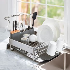 Adicione mais espaço de secagem conforme sua necessidade com esse escorredor de pratos expansível da KitchenAid.