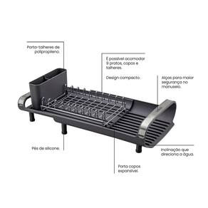 Para aqueles dias de rotina corrida que você não tem muito tempo para as tarefas de casa, conte com o míni escorredor de louça Tramontina com secador e porta talheres grafite.