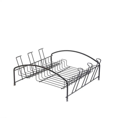 Escorredor Pettit Produto confeccionado em aço carbono com acabamento preto. Conta com uma tela que comporta pires, pratos copos e talheres e ainda possui suportes especiais para copos em suas laterais. Ideal para cozinhas de pequena circulação, deve ser usado apoiado em bancada.