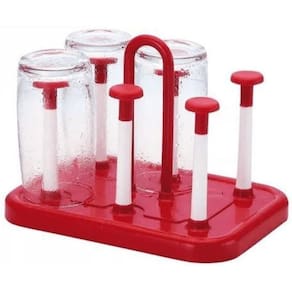 Medidas: 17cm x 23cm x 17cm Composição: plástico reforçado Cor: base vermelha, hastes branca Capacidade: 06 copos