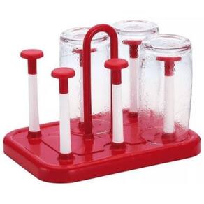 Escorredor porta copos de cozinha pia mesa 6 lugar vermelho Escorredor porta copos 6 lugares - vermelho